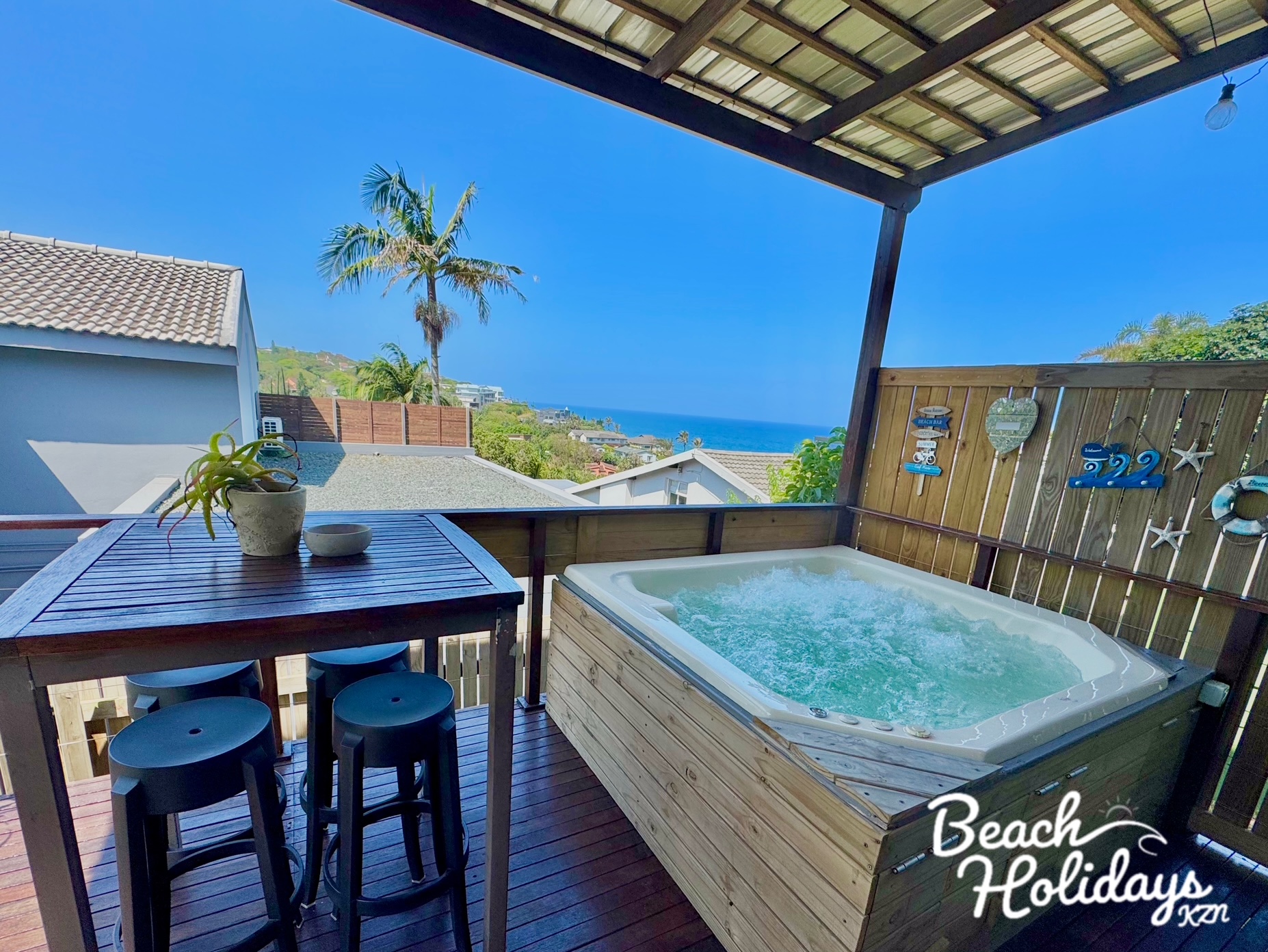 Take in the stunning sea views as you braai on a gas braai on the deck or enjoy a bubbling jacuzzi.