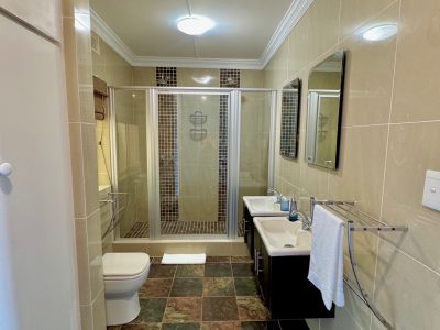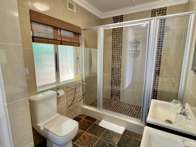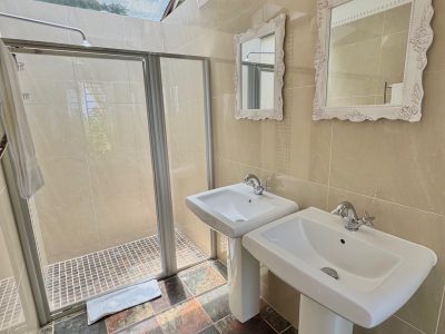 6 spacious bedrooms (each with ensuite bathroom) King, Queen and 3 double beds. Fans throughout. Enjoy ample living space with comfortable seating areas for everyone to gather in the tv room with 55inch smart tv or on the outside patios and decks with sun loungers looking out to sea.