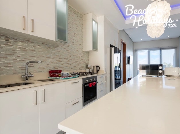 Modern and upmarket, decorated self catering 4 sleeper unit in complex close to the beach in Shakas Rock. Groundfloor access – no stairs.